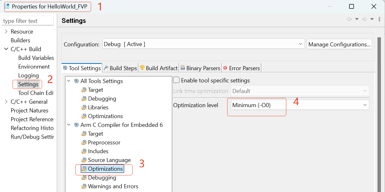 1)、打開工程的屬性窗體,把編譯優化設置為O0,如圖4-1所示: