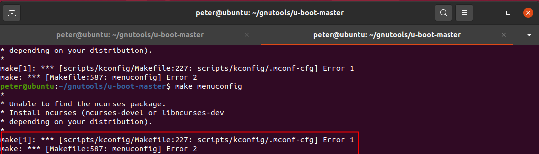 在Uboot中運(yùn)行“Make Menuconfig”時(shí),配置菜單無(wú)法運(yùn)行,出現(xiàn)如圖2-1所示的錯(cuò)誤: