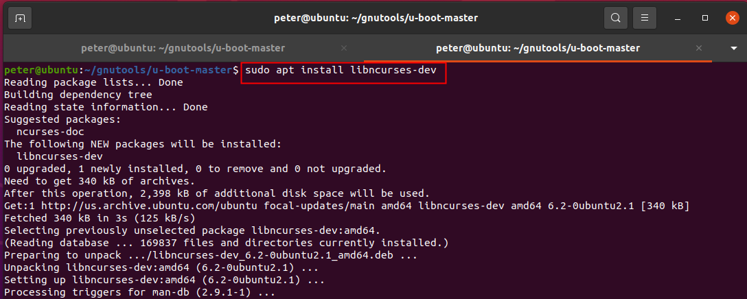1)、運(yùn)行“sudo apt install libncurses-dev