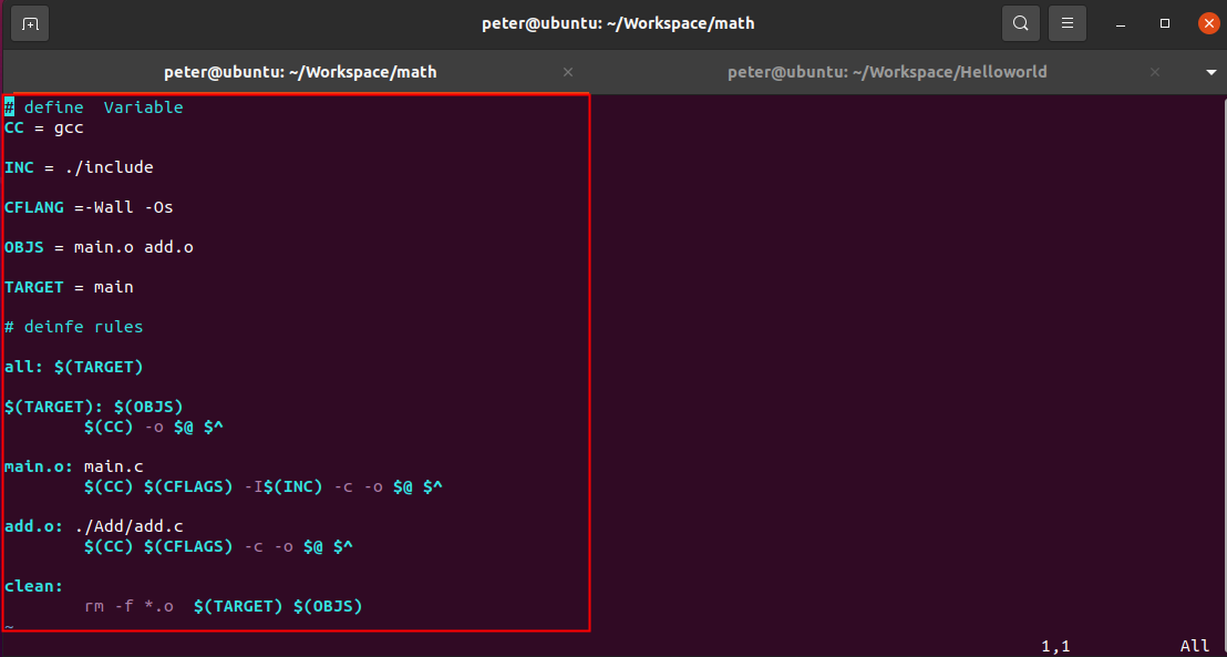 5)、在math目錄下創(chuàng)建Makefile文件,文件的內(nèi)容如圖4-4所示: