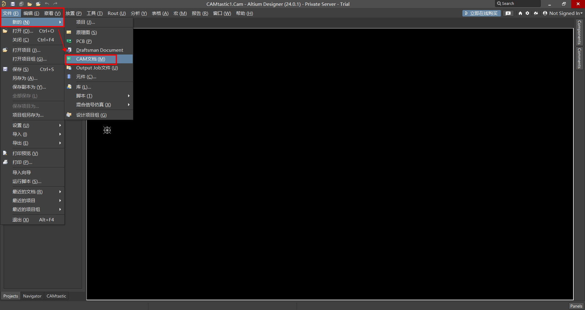 導入 Gerber文件:【文件】→【導入】→【Gerber】將 Gerber 文件導入步驟一新建的 cam 文件中。