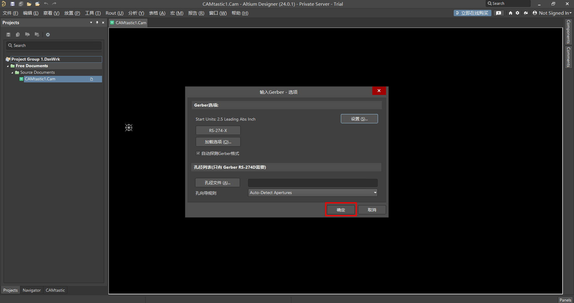 彈出【輸入 Gerber-選項】對話框,點擊【確定】