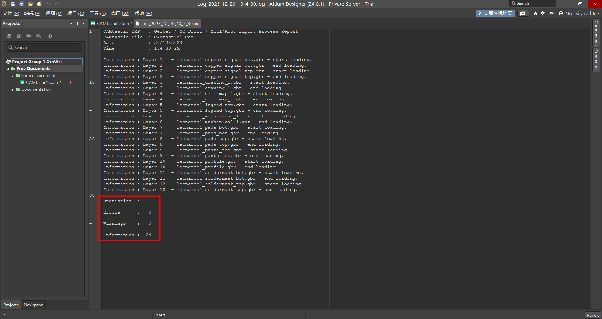 可以看到日志提示,無警告無報錯,返回CAM 文檔。