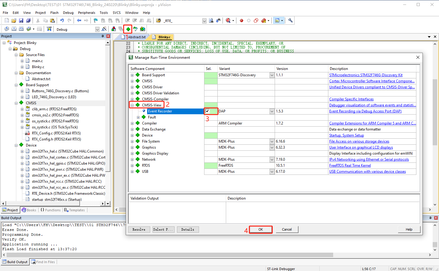 如圖 1 所示,打開 Manage Run-time Enviroment ,展開 CMSIS-View勾選 Event Recorder 并點擊 OK