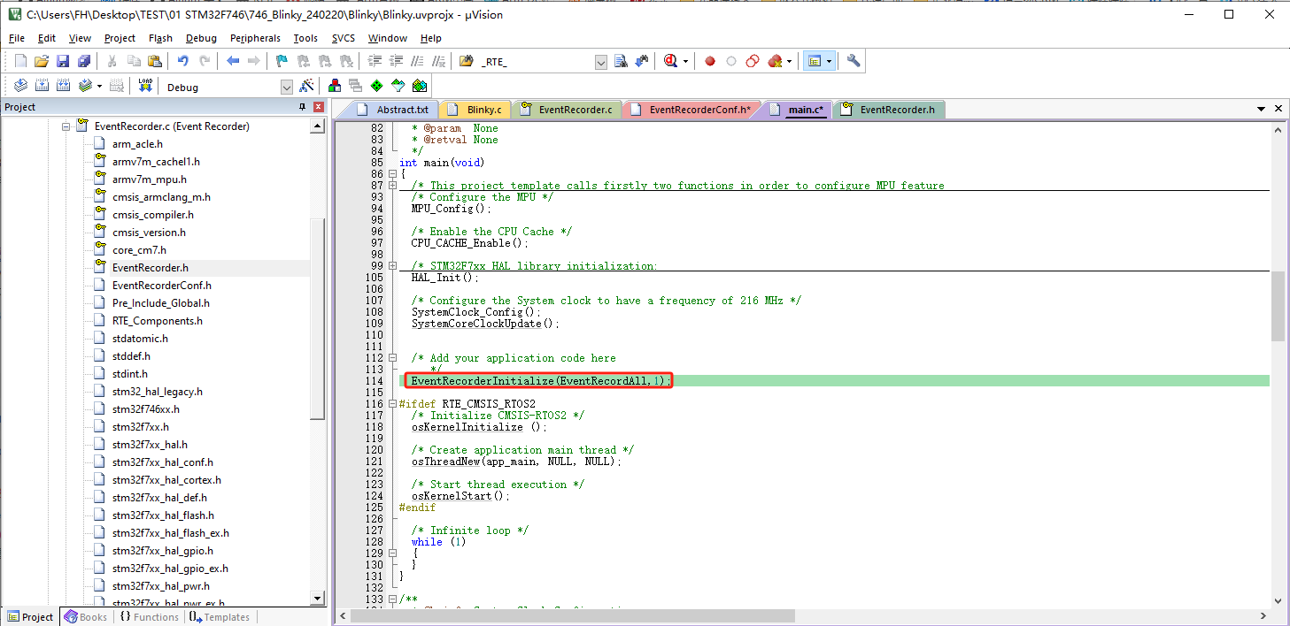 在 Blinky.c中包含 EventRecorder.h 頭文件