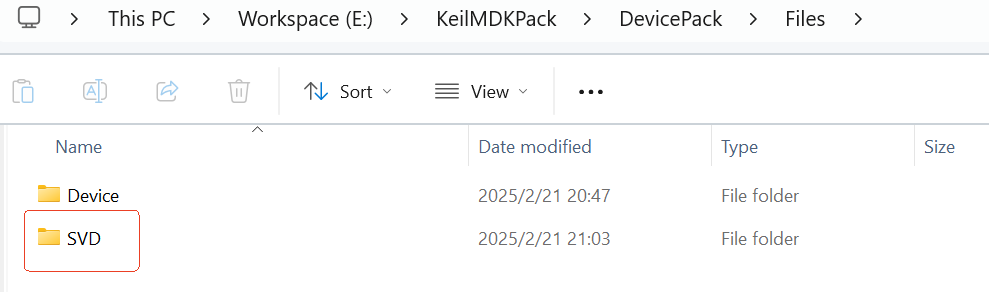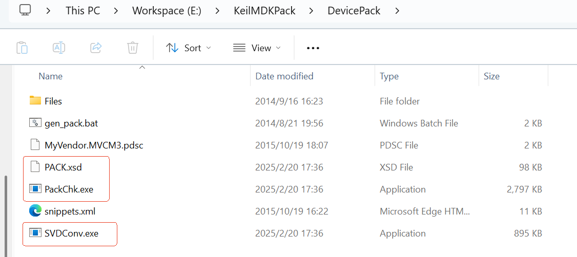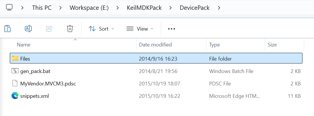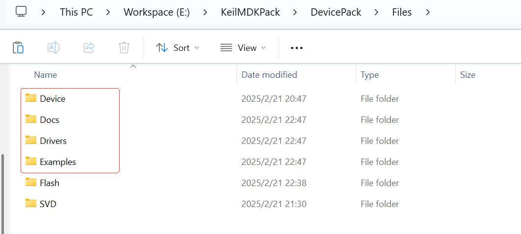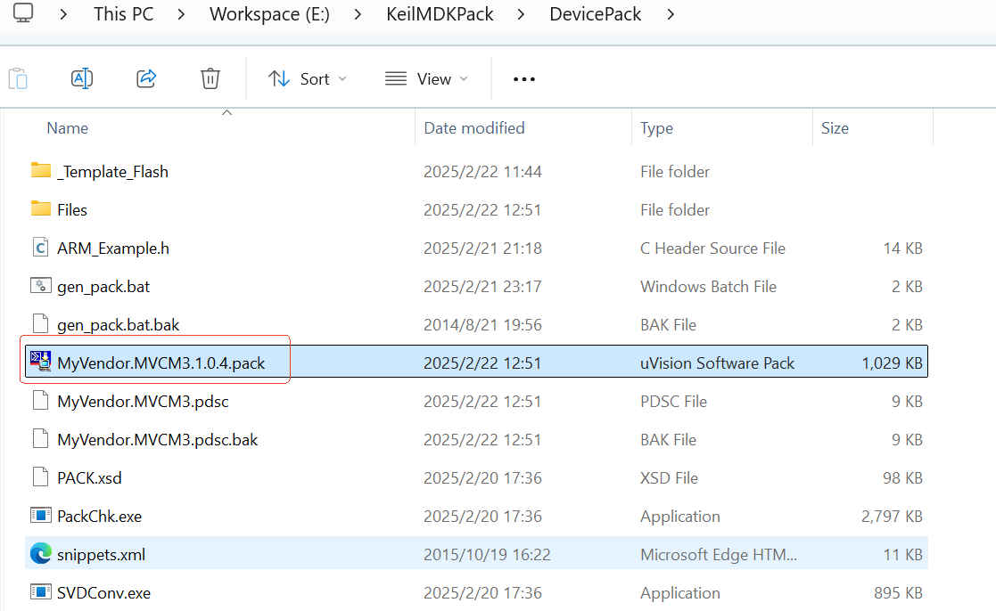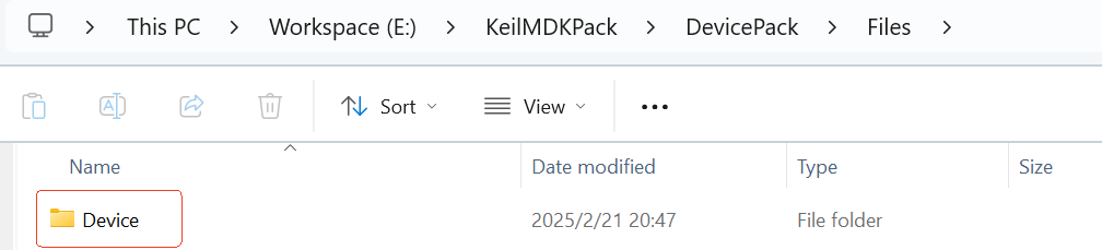 1. 創(chuàng)建一個(gè)處理器PACK制作的工作目錄,如E:KeilMDKPackDevicePack。
