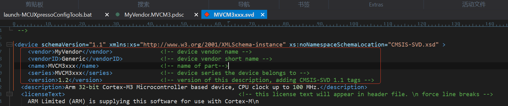 10. 打開(kāi)“FilesSVD”目錄下的“MVCM3xxx.svd”文件,修改如圖3-9的內(nèi)容:
