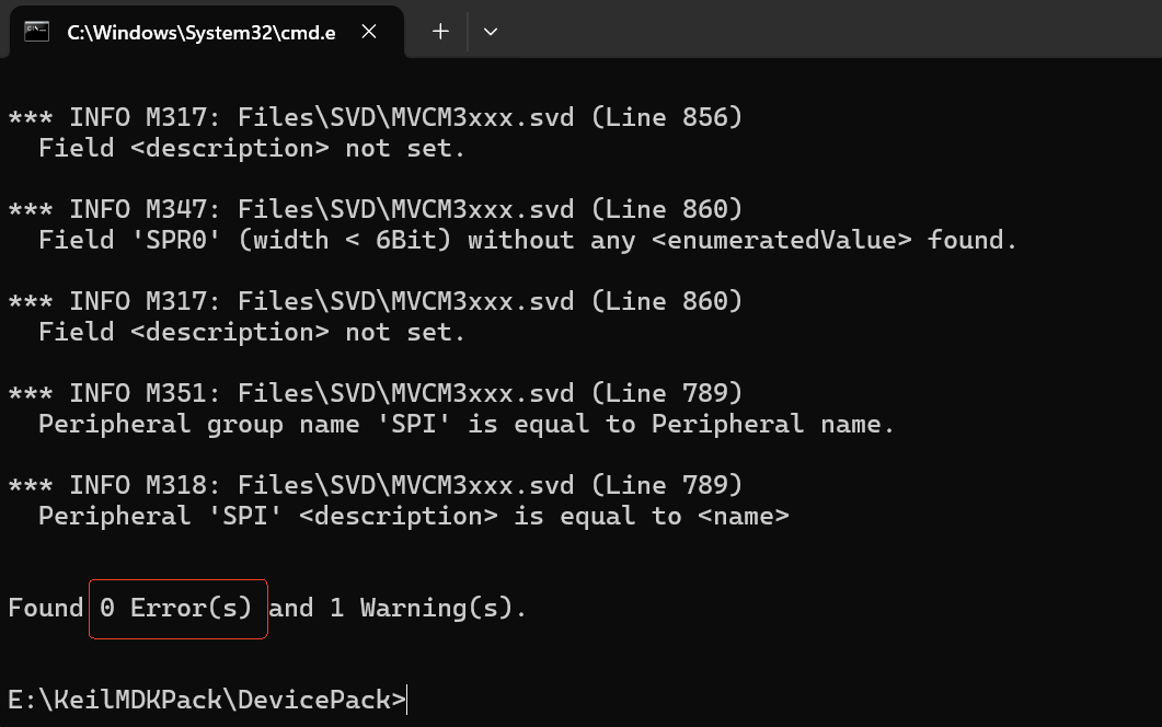 11. 在工作目錄下運(yùn)行:SVDConv.exe FilesSVDMVCM3xxx.svd --generate=header –-fields=macro,沒(méi)有出錯(cuò),如圖3-10所示: