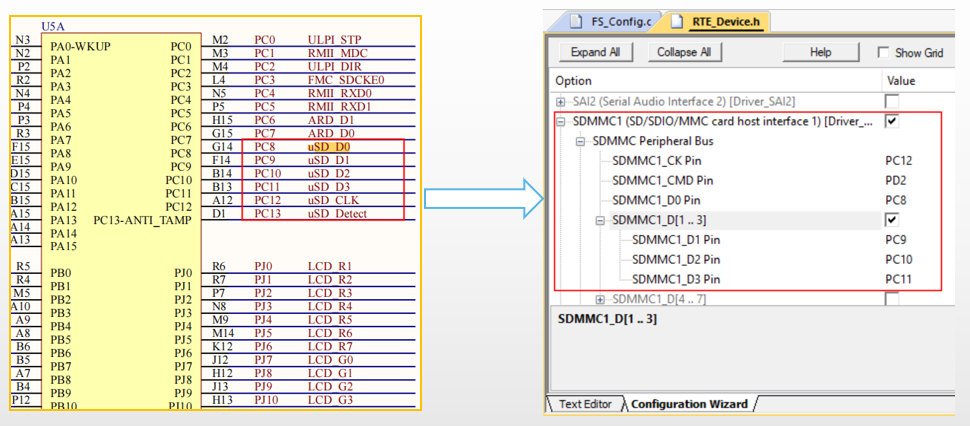 7. 根據目標設備的硬件情況,在“RTE_Device.h”配置文件中設置好引腳信息,如圖3-7所示: