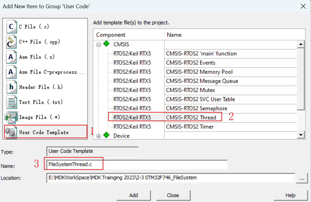 1. 在Keil MDK中創建一個新的工程,并添加FileSystem組件。選擇“FileSystem”組件,這將向工程中添加FileSystem所需要的源文件和頭文件。