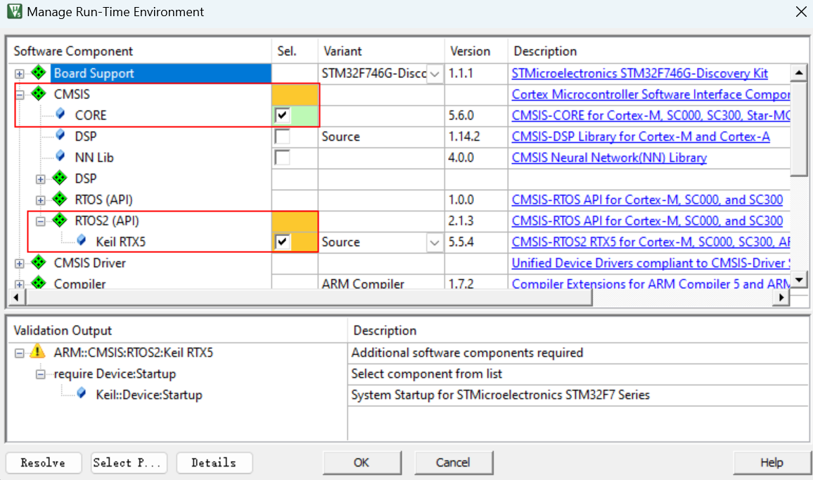 3. 選擇“CMSIS-->CORE”和“CMSIS-->RTOS2-->Keil RTX5”組件,如圖3-3所示: