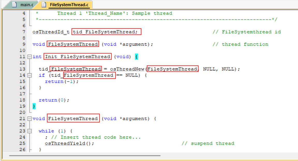 10. 修改一下“FileSystemThread.c”這個(gè)框架文件,如圖3-10所示: