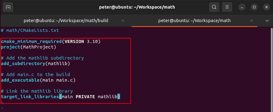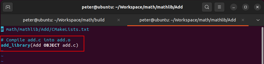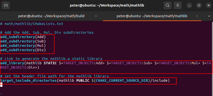 2. 在“mathlib”目錄下,創建一個CMakeLists.txt文件,內容如圖3-3所示: