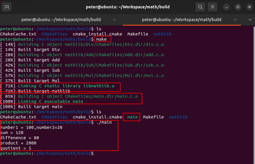 進入在“build”目錄下,運行make,并運行執行文件:main,如圖4-1所示: