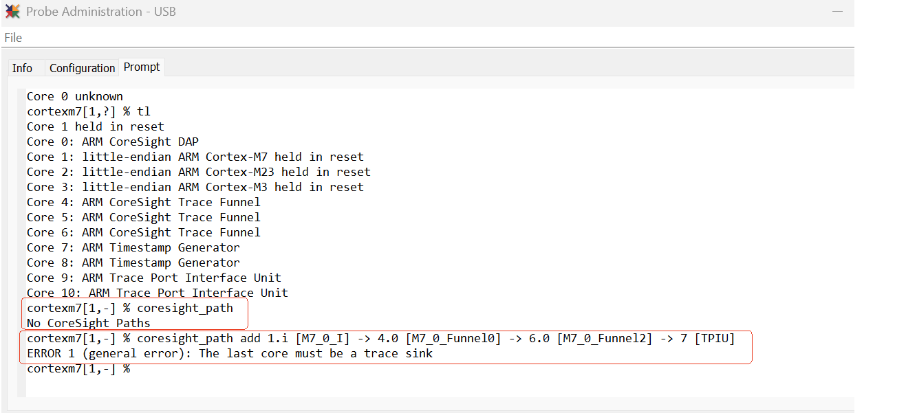 2)、輸入“tl”可以查看到第一個TPIU的Core號是9,把7修改為9就可以了。如圖4-2所示: