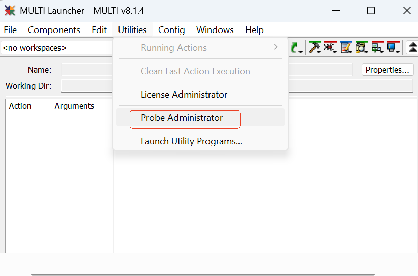 1)、打開Greenhills的MULTI的Probe管理器界面,如圖4-1如示: