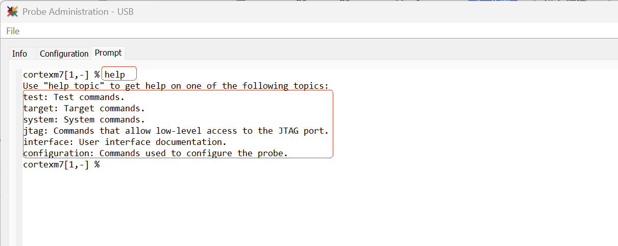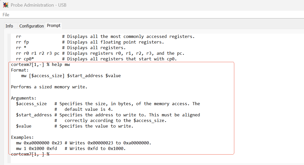 在Greenhills的MULTI的Probe管理器界面通過“Help”了解各類型指令。