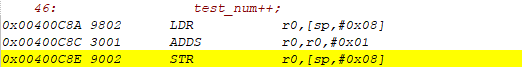 3)、第3處:對應(yīng)C語句所對應(yīng)的匯編語句