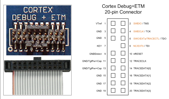串行調試(Serial Wire Debug),需要4個SWDIO和SWCLK 及電源和地(或者5個,增加 SWO)引腳。