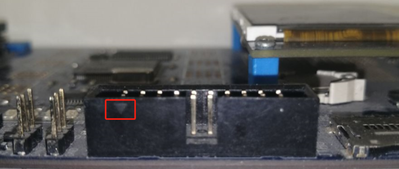 2)、另外還有一種是對于實物接口的線序不清楚,如圖 1 ,通常這種排線,紅線為 1 腳,同時在座上可以看到一個倒三角標記,也表示是 1 腳。