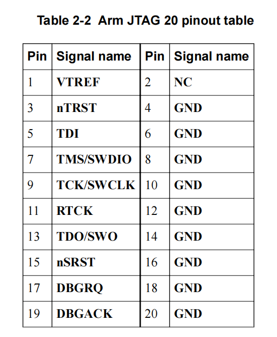 1)、因為Ulink pro本身連接線上的Cortex-M ETM Interface 20-pin Connector接口很小,無法通過直接跳線去完成連接,所以需要先接上Ulink pro的JTAG轉(zhuǎn)接板,轉(zhuǎn)接板的接口定義如圖4-1。
