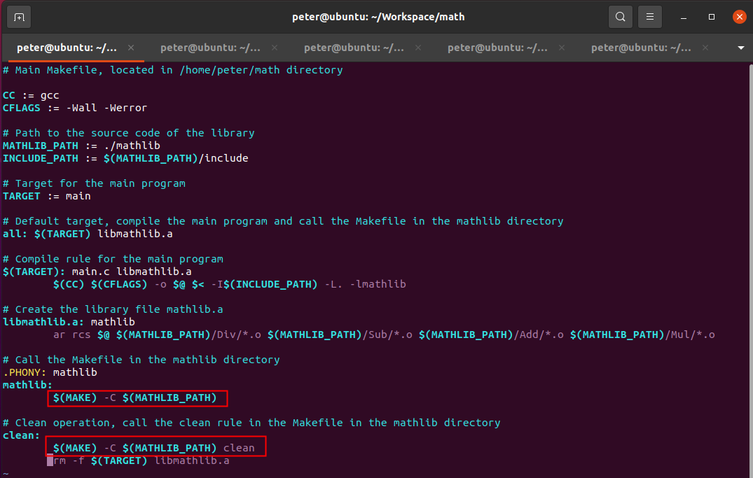 1. 如果需要把庫文件存放在“mathlib”目錄下,需要如何修改Makefile文件的內容。