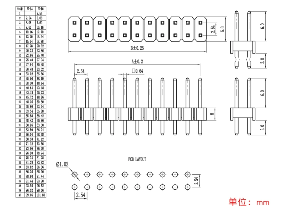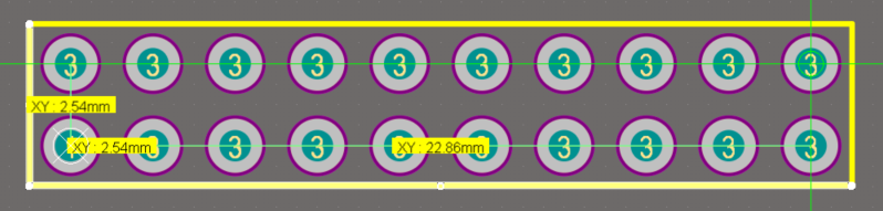 本文示例一個 2.54mm-210 的排針封裝繪制。