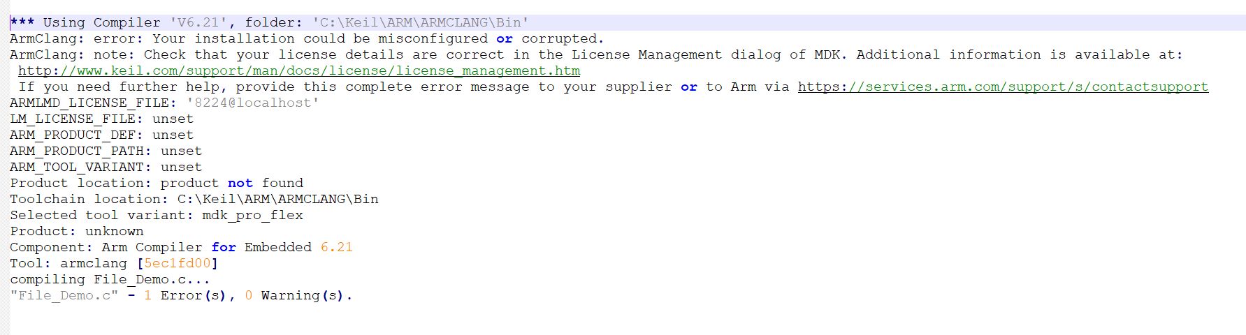 在使用MDK的時候,出現彈窗提示“Warning: Registered ARM Compiler ignored, Version needs to be 5 or higher. Path: 'ARMCLANG'”的警告信息(如圖2-1),然后,構建工程的時候也出現了報錯,報錯信息如下(如圖2-2和代碼塊):