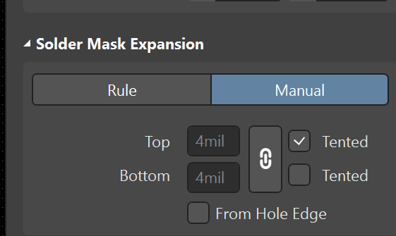 4)、在過孔屬性中的Solder Mask Expansion中,勾選Tended,讓過孔蓋油。
