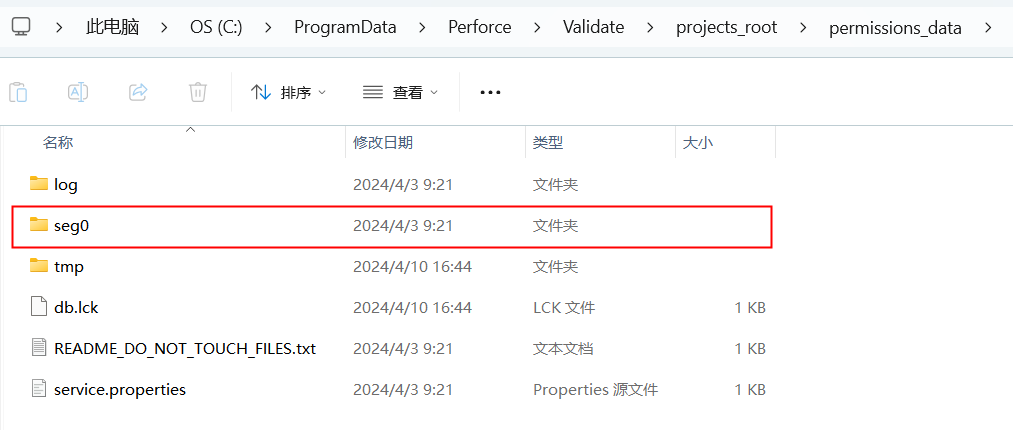 3)、進入<Perforce>文件夾,進入<Validate>文件夾,比對正常電腦上的文件內容,<Project>--<permissions>--<Seg0>內.dat文件缺失。嘗試將缺失文件移植過來不可正常運行。