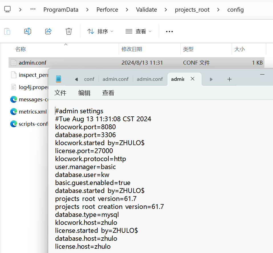 注:該文件Windows環境下路徑默認為C:ProgramDataPerforceValidateprojects_rootconfigadmin.conf