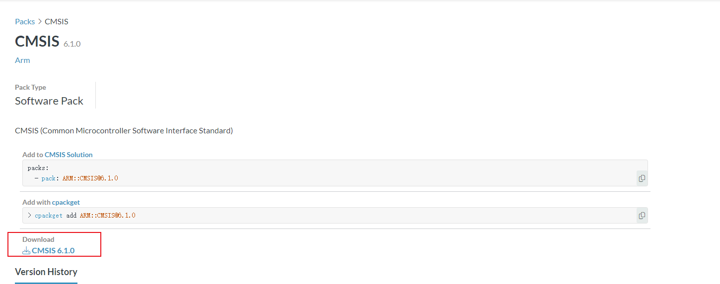 2)、首先,需要在Pack包官網中下載ARM.CMSIS.V6(https://www.keil.arm.com/packs/cmsis-arm/versions/)。