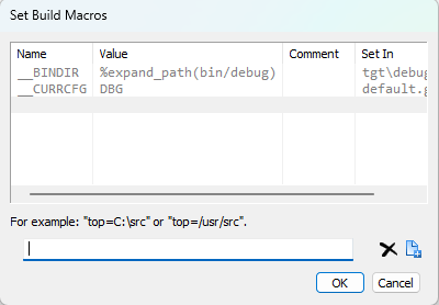 2)、然后,會進入到Set Build Macros窗口中,在這里就可以自定義通配符和定義通配符的值。定義好的通配符需要使用“$”符號進行引用。(如圖4-2)