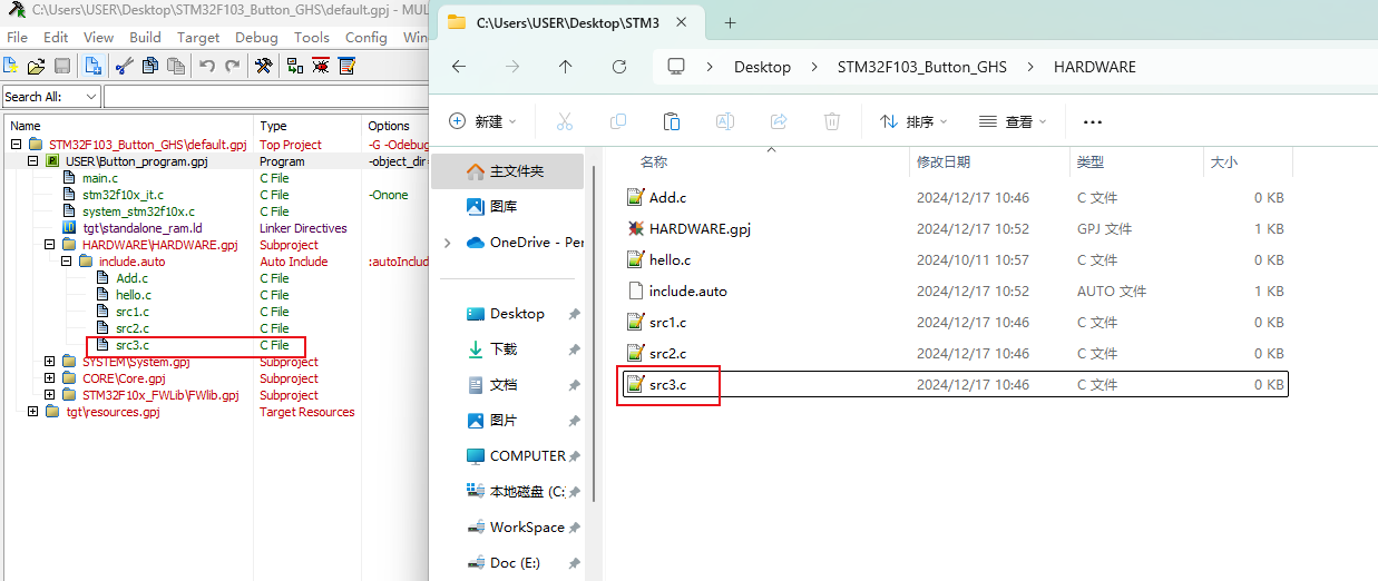 4)、設(shè)置完成后,就可以在工程目錄中看到對應(yīng)文件夾下面的源文件都自動導(dǎo)入了。(如圖4-4)