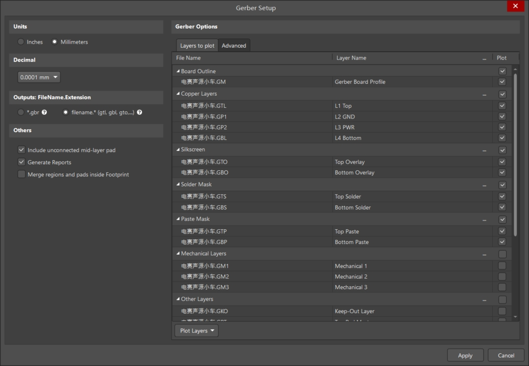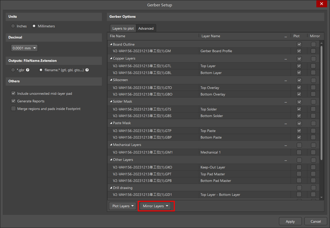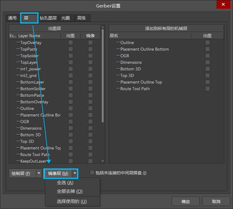 此時打開 Gerber 設置,就可以對需要鏡像的層進行設置了。