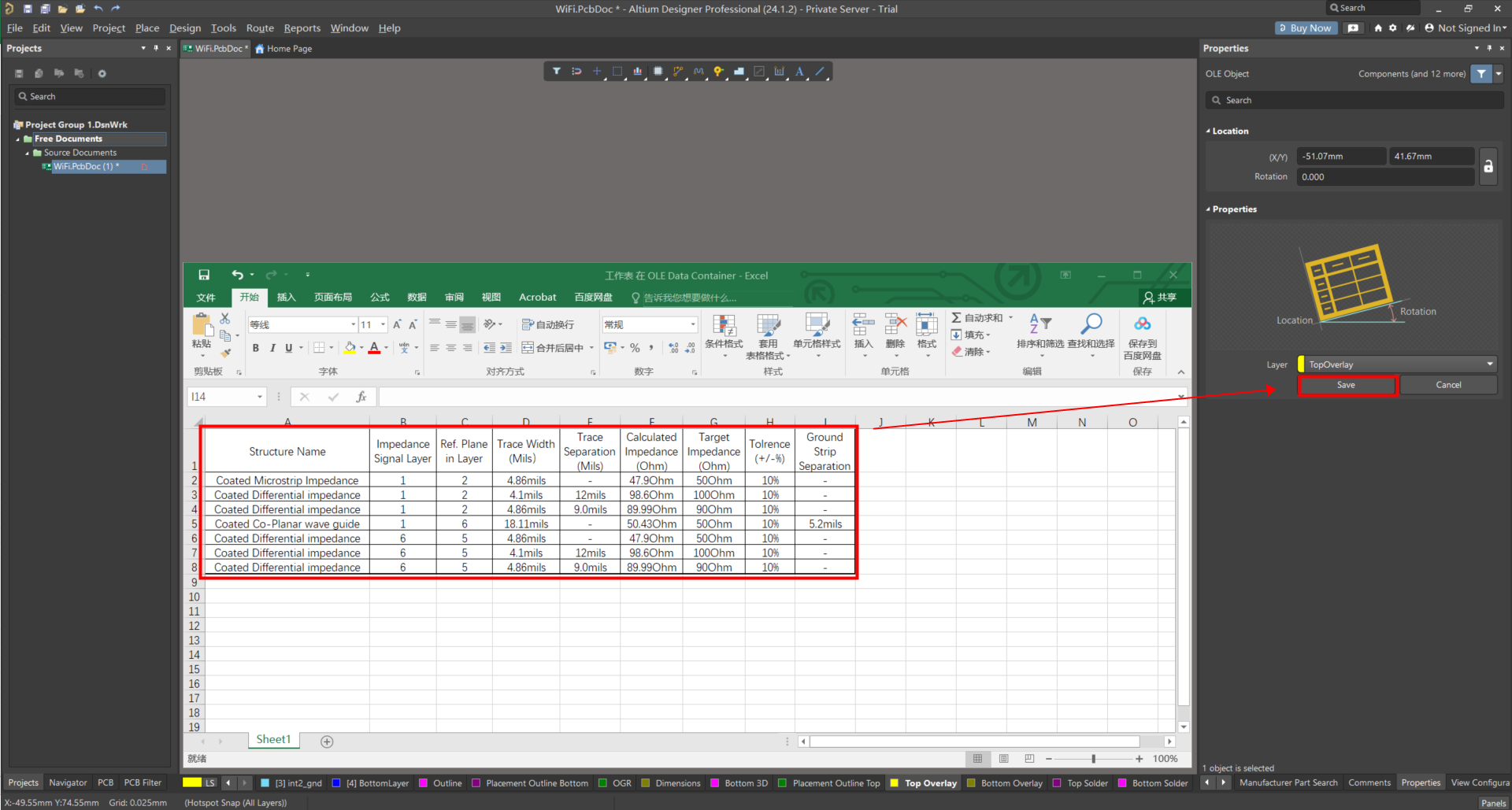 用戶 PCB 中有一組阻抗線寬的走線信息,該表如何快速編輯放置?