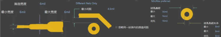 ① 選擇合適的線寬、安全間距及過孔大小,即設置好線寬、間距、過孔大小等規則。
