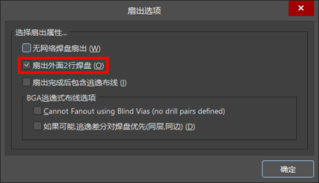 ③ 扇出完成后包含逃逸布線:扇出并從BGA引線出來(此項不建議勾選,因為GND和Power 等線也會被引出來,占據引線空間,這是用戶所不希望的)