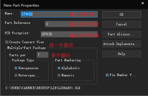 在 OrCAD Capture CIS 17.4 新建 Library 后 New Part 填入創(chuàng)建符號的基礎(chǔ)信息,點擊 OK。