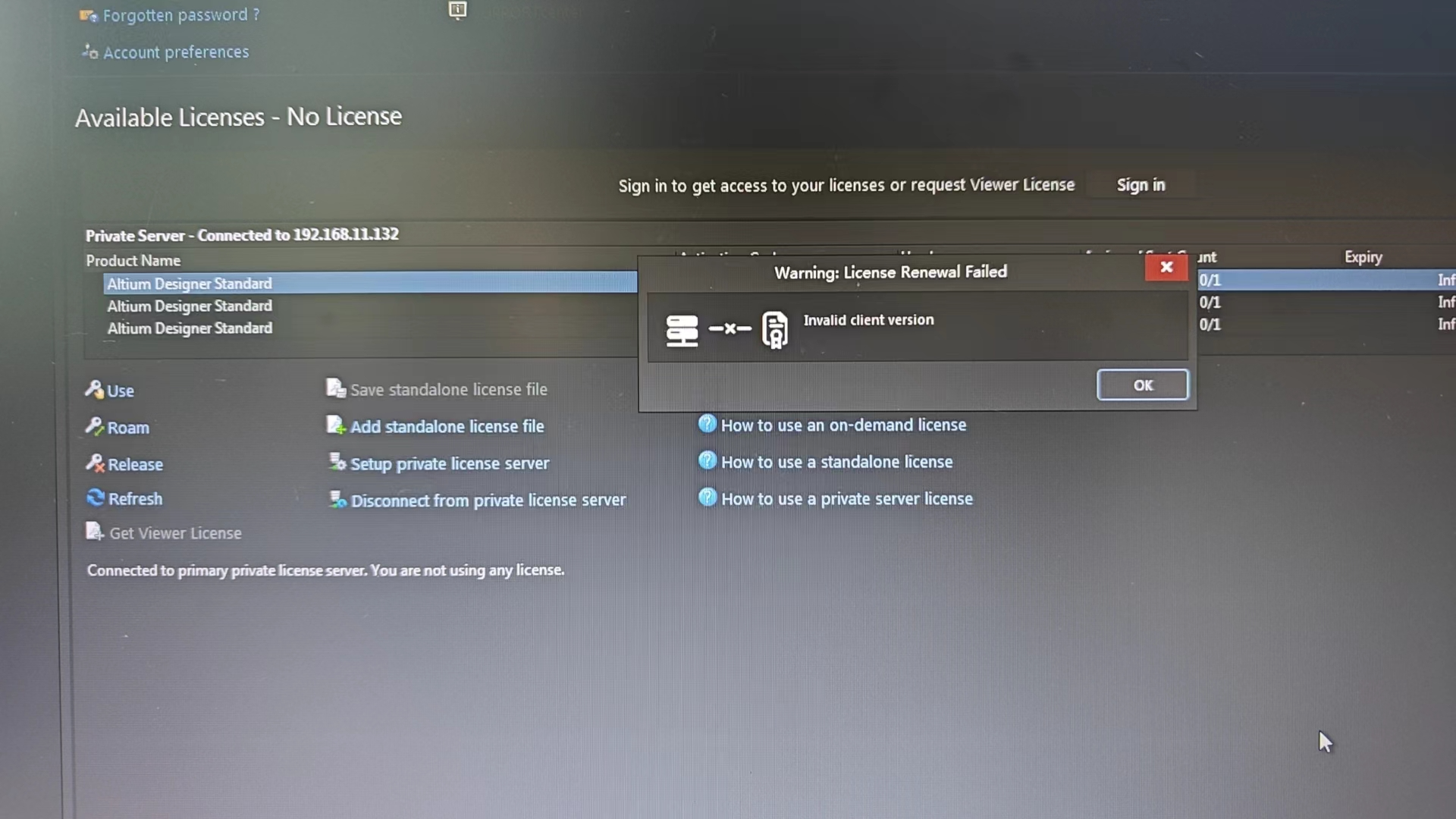 郵件授權 USE 時出現如下報錯:Warning: License Renewal Failed Invalid client version(客戶端版本無效)