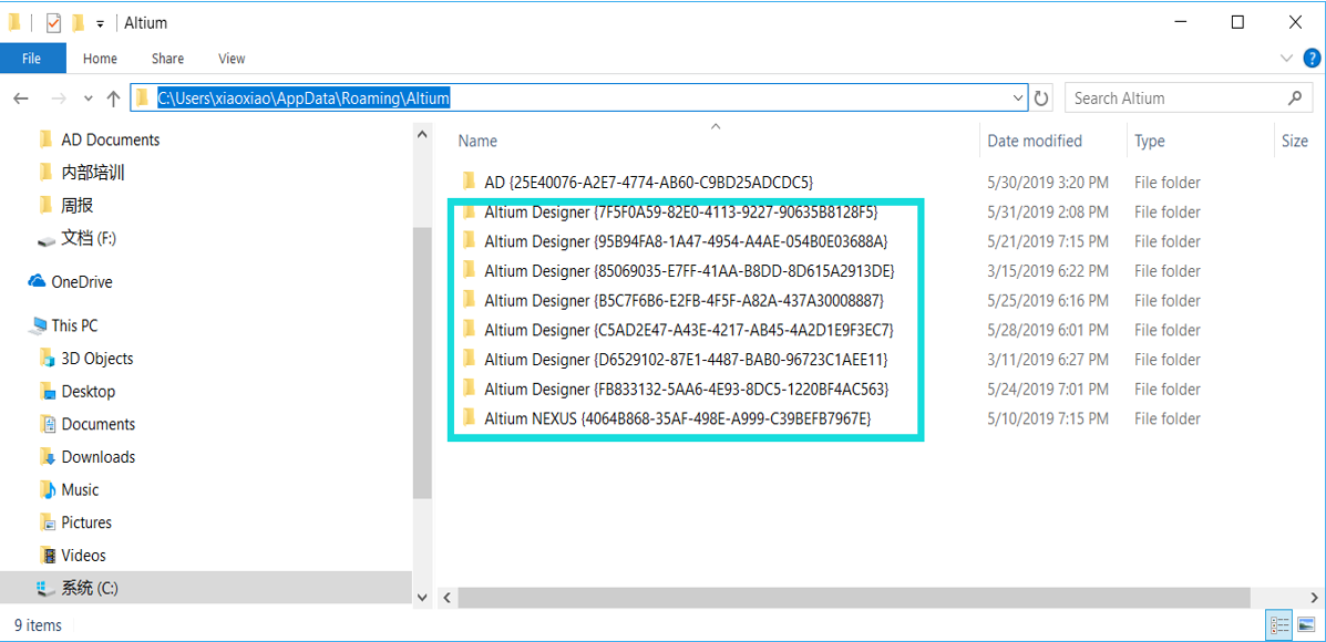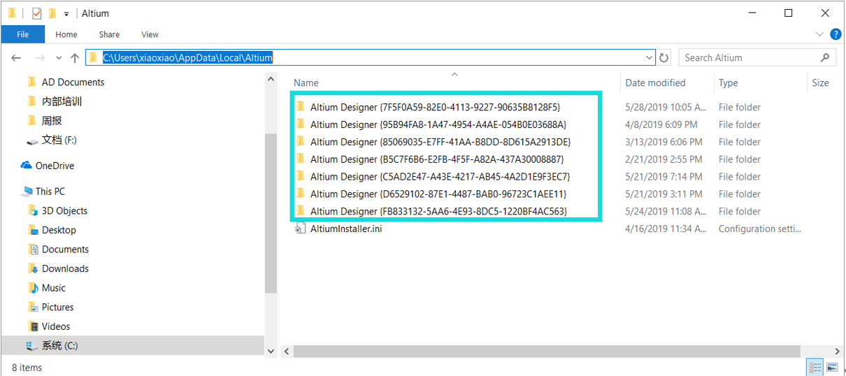 2)、刪除 C 盤下 Local 和Roaming 關于 Altium 的文件。