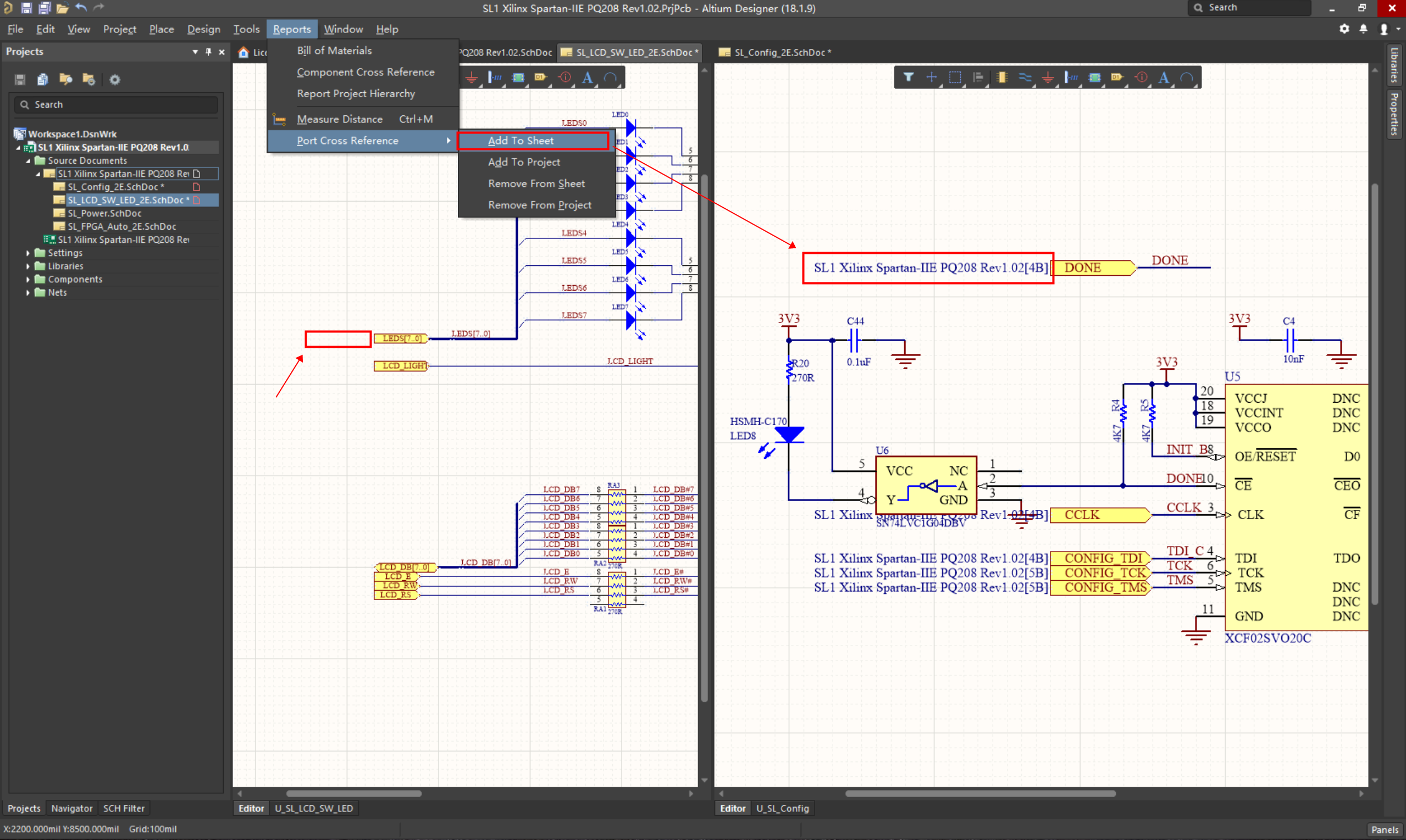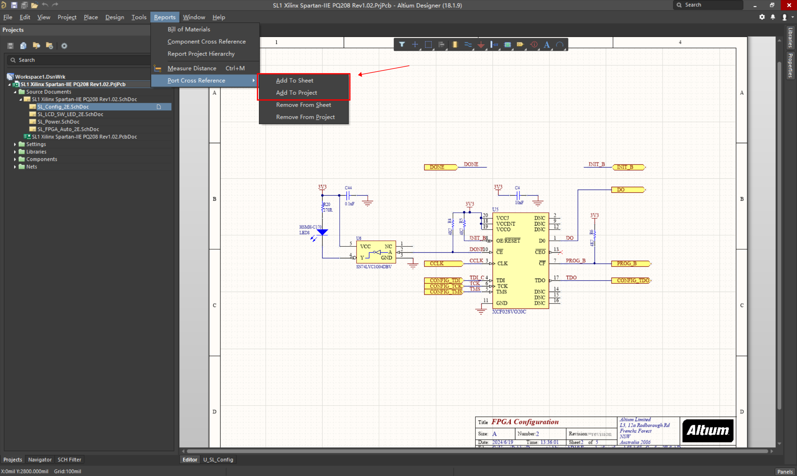 菜單欄【Report】→【Port Cross Reference】→【Add to Sheet】/【Add to Project】,這兩個按鈕為灰色,無法進行點擊使用。