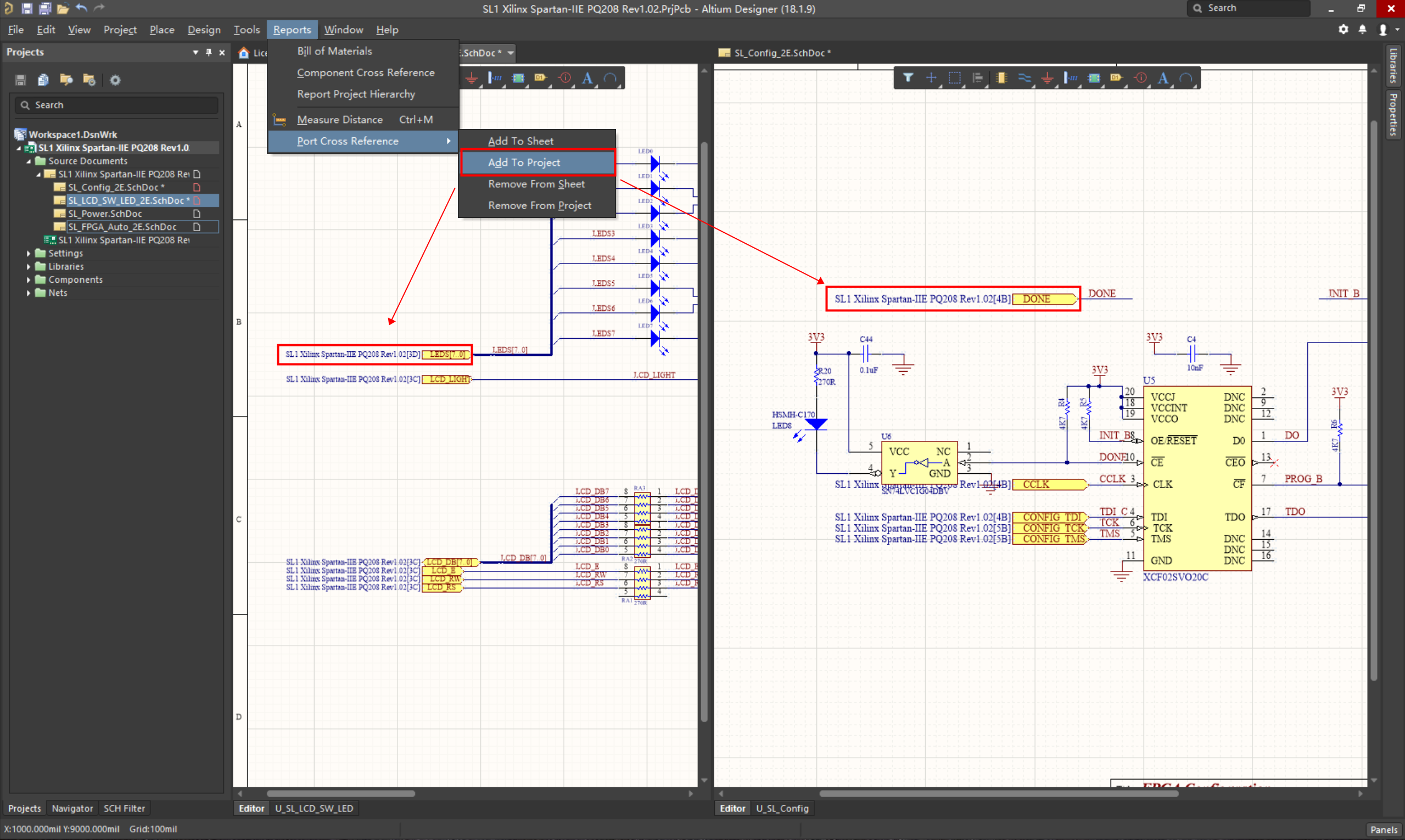【Add to Project】將整個工程中的原理圖 Port 上添加交叉探查信息。