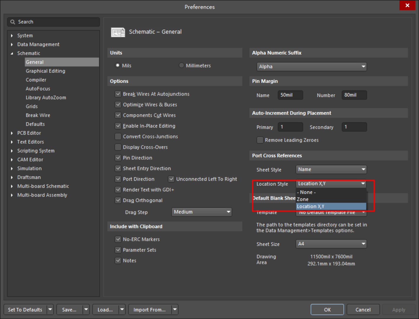在【設置】→【Schematic】→【General】的【Location Style】設置 Port 的位置樣式。