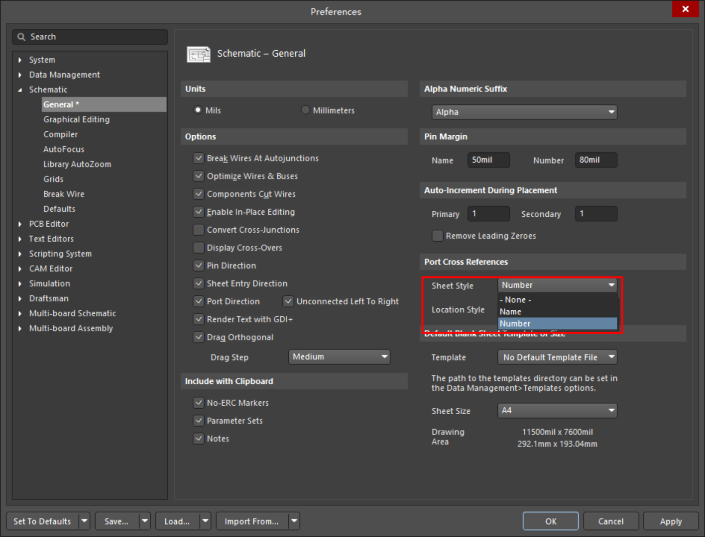 【Sheet Style】樣式有【Name】/【Number】,如果設置為【Number】需給原理圖進行編碼。