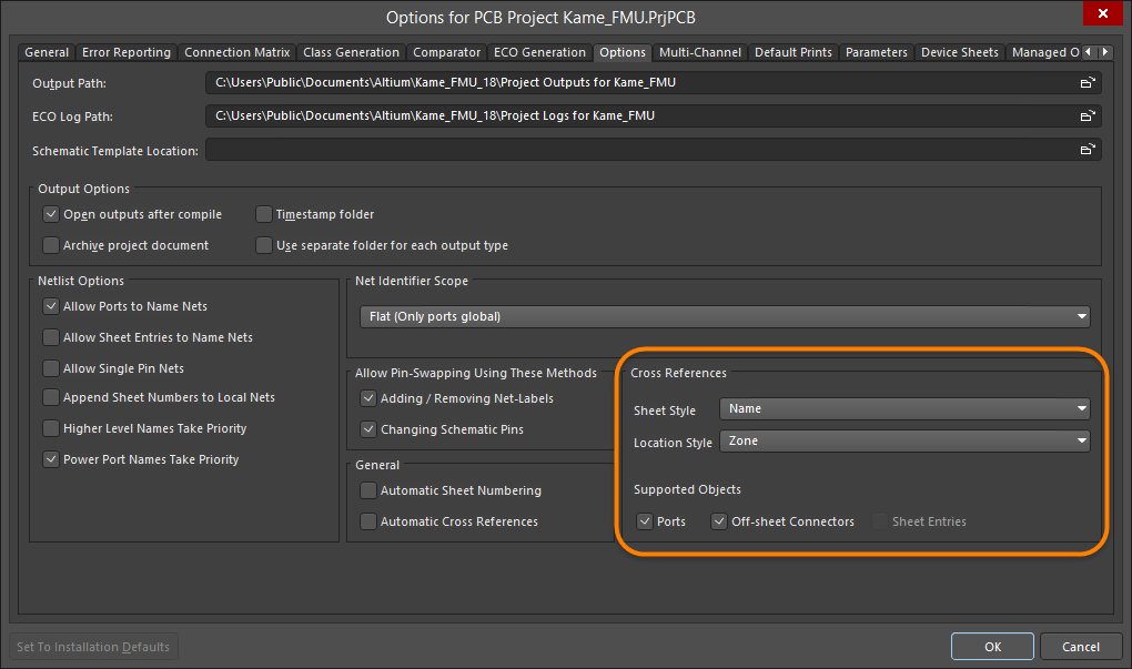 在AD21.6中,Port 叉引用添加和刪除命令已從【Report】菜單中刪除,取而代之的是新的【Automatic Cross References Settings】命令。選擇此命令將打開【Project Options】對話框的【Options】選項卡,您可以在其中打開/關閉該功能。