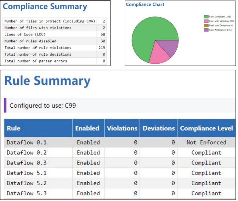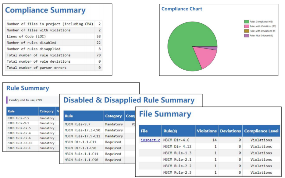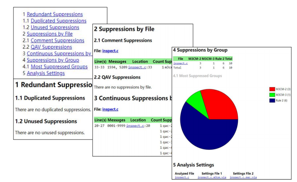 生成html文件,標(biāo)準(zhǔn)遵從性報告,顯示工程對標(biāo)準(zhǔn)的合規(guī)性以及被抑制的規(guī)則報告