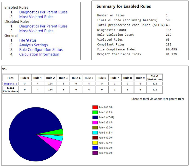 生成html文件,MISRA 合規(guī)性報告,主要顯示代碼對MISRA規(guī)則的遵從性(遵守或違背等)