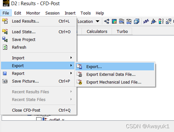 2.1 在cfd-post的file菜單點擊export,如圖中鼠標點擊位置