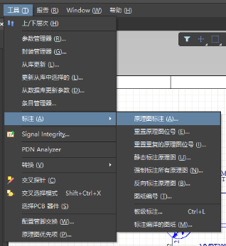 - 打開已經(jīng)繪制好的原理圖,執(zhí)行菜單欄中的“工具”-->“標注”-->“原理圖標注”。